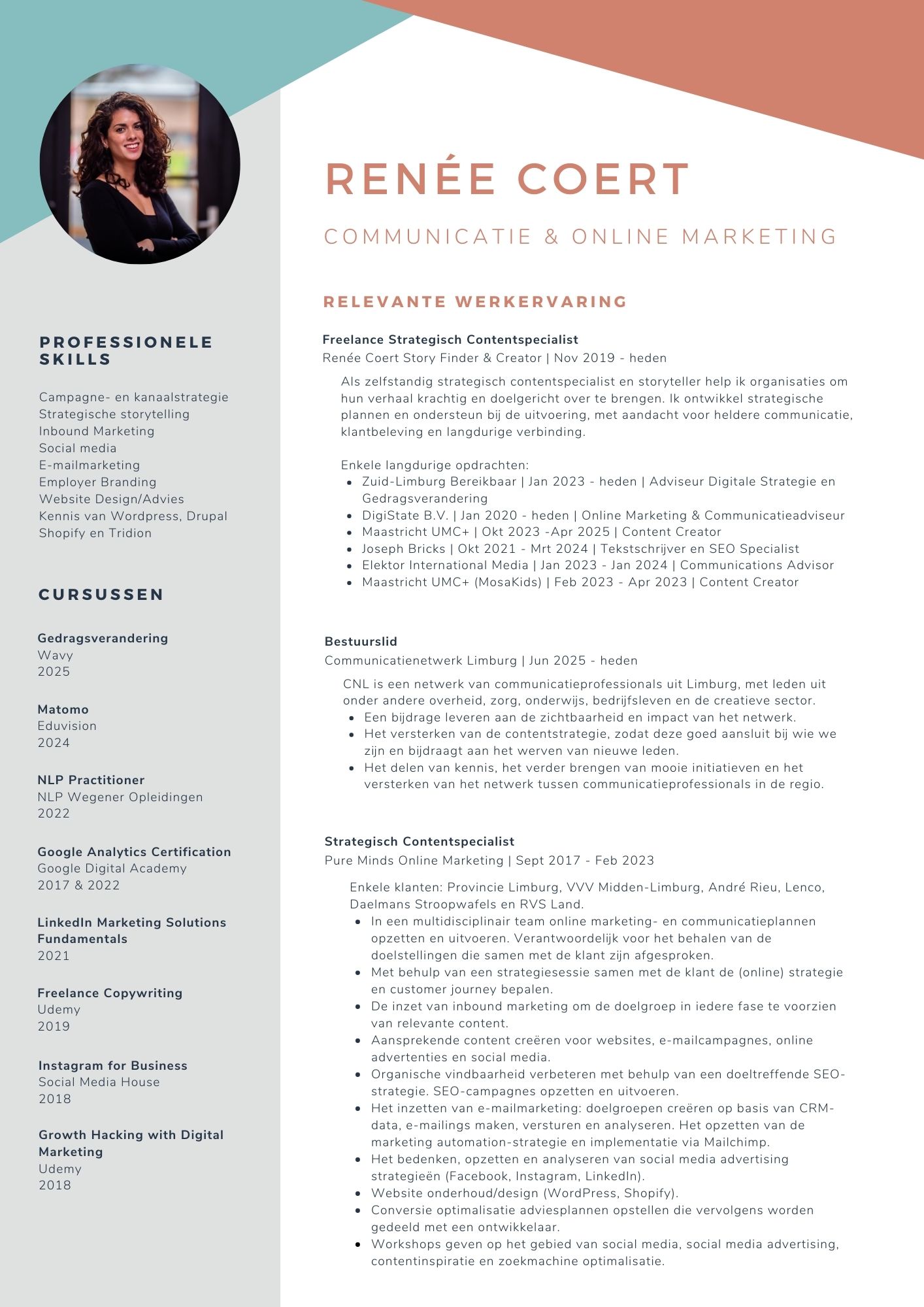 Na 13 jaar werken in sales, communicatie en online marketing besloot ik in 2020 mijn eigen weg te gaan. Sindsdien werk ik als zelfstandig strategisch contentspecialist voor organisaties die niet alleen zichtbaar willen zijn, maar vooral verbinding willen maken met hun doelgroep.